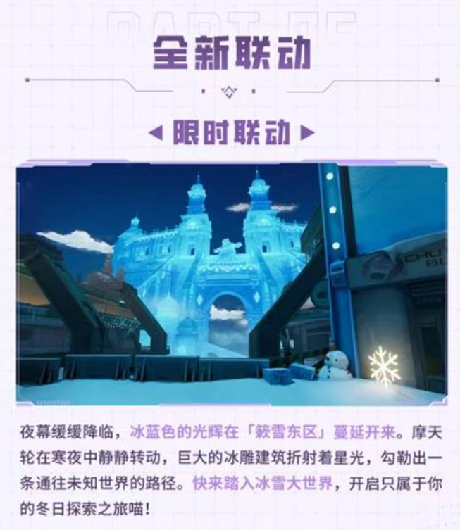将全面记录玩家在该模式下的表现,让玩家在紧张刺激的对抗中不断挑战自我,冲击更高的荣誉。而“限时联动”活动则将带领玩家踏足冰雪大世界,开启冬日探索之旅。