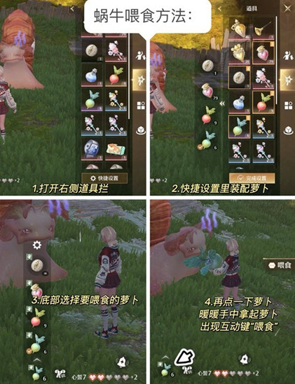 生病蜗牛被治疗后(喂了一个绿萝卜后),还能接着喂三个红萝卜。生病蜗牛不刷新,喂完绿萝卜后就是普通蜗牛啦