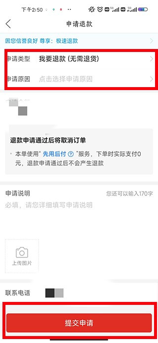 在申请售后中填写情况和申请理由,最后点击提交申请即可取消订单