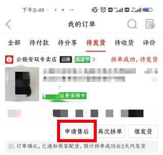 找到自己想取消的订单,点击申请售后
