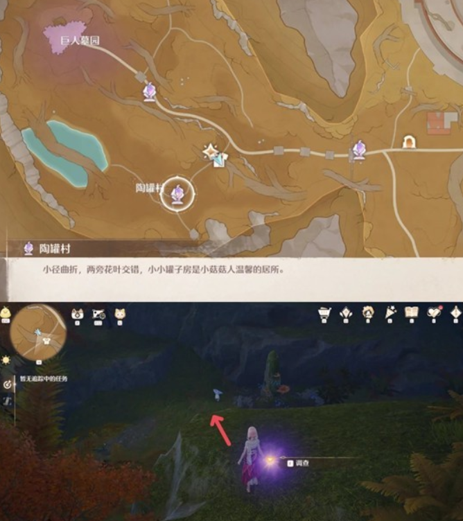 位置:巨人墓园-陶罐村旁边,星光追寻-迷雾森林传送点路对面的石头旁边。
