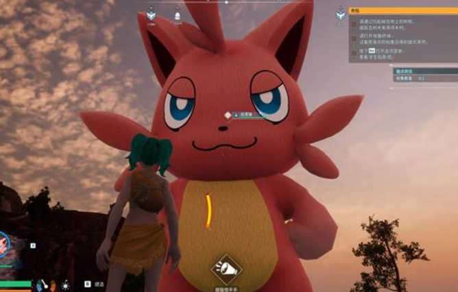 当你靠近捣蛋猫至有效距离时,屏幕上会自动弹出锁定提示。跳过对话动画后,直接使用普通攻击就能进入战斗。作为初始的野生帕鲁,捣蛋猫的血量很低,只需要用石斧进行2到3次普通攻击,就能让它进入可以收服的虚弱状态,这时点击“收服”按钮即可完成捕捉。