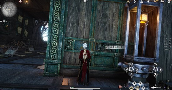 从浮空岛进入飞天城舱内看过去视角,箭头指向是第二个蜡烛,进门前右手的灯那里有四季绘图夏