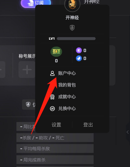接着点击下方选项列表中的"账户中心"。