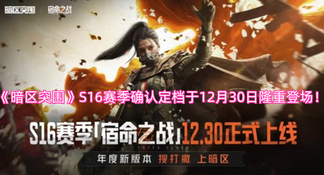 《暗区突围》官方正式宣布,S16赛季宿命之战将于12月30日08:00正式登场。本赛季为玩家们带来多项核心更新,包括全新地图山谷·新秩序、全新模式英雄集结,以及多款实验型武器与战术道具,等着玩家们来体验!