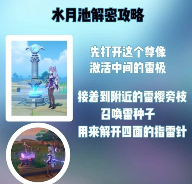 在《原神》中拥有众多可操控角色,开局时玩家可为旅行者选择性别,其余角色性别均为固定。本文小编将为玩家们带来详细稻妻水月池解密完成方法攻略,助玩家们能够顺利将任务完成,获取对应的奖励!