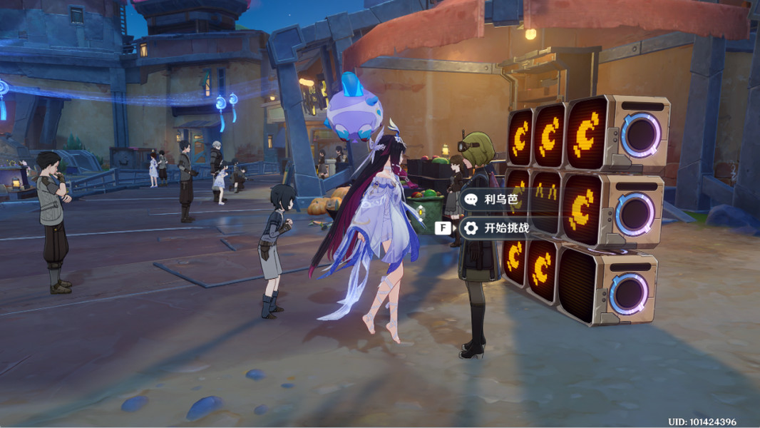 ⑤伙伴合照。就在气球摊位的旁边,有一块合影板,可以邀请凛角鹿、旅行者、菈乌玛合影。可无限次数选,不必纠结~