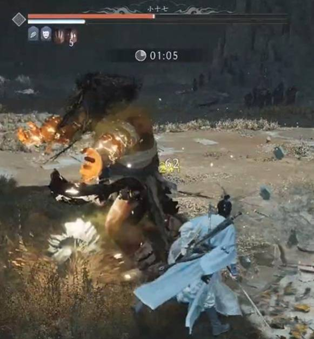 回转一圈敲地板爬行:看到他跳起来后,向后回避一次拉开一个身位距离,接着秒蓄秒放,整个流程就这个比较需要熟悉掌握,如果真不行可以在他冲过来的时候二段挑回避。