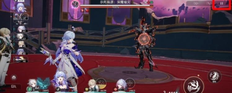 进战前若不是想要用的配队,可以点右上角的「暂停」