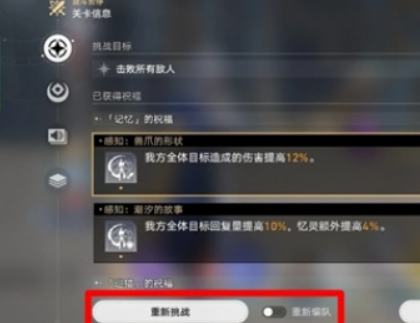 然后点开「重新挑战」旁边的「重新编队」后,再点击「重新挑战」就可以切换配队角色了