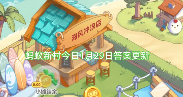 《蚂蚁新村》每日将更新一道与职业或非遗相关的小知识题目,答对后即可提升木兰币的产出速度。由于每日题目与答案都有变化,不少玩家无法第一时间获取正确答案。本文小编为大家整理了蚂蚁新村2026年1月29日答案更新,助大家能够顺利完成答题、提高收益。
