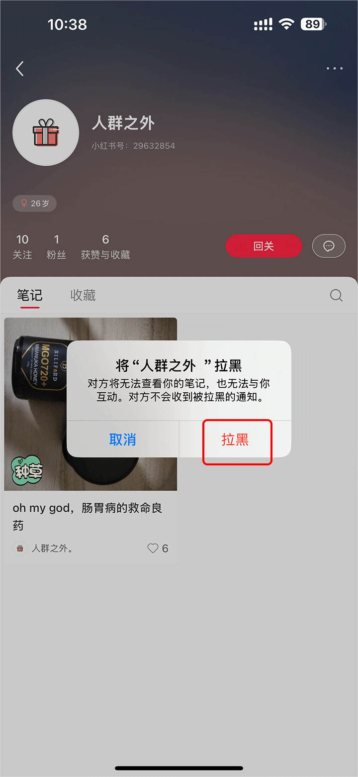 接着就会弹出界面,点击“拉黑”