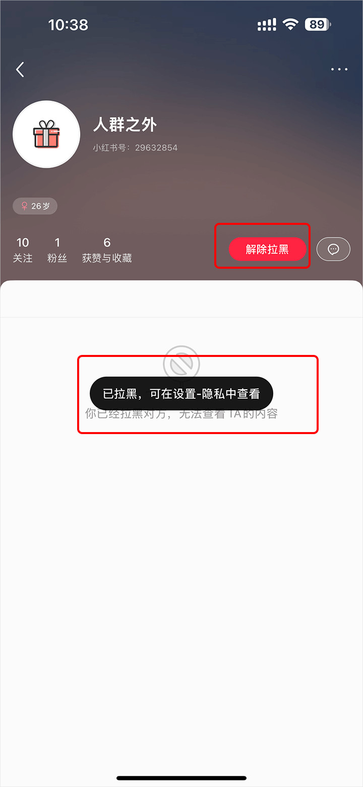 显示拉黑成功后,再刷新下也可以点击“解除拉黑”,这个随用户需求