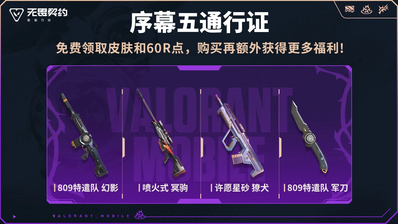 免费领取皮肤和60R点,购买通行证再额外获得更多福利