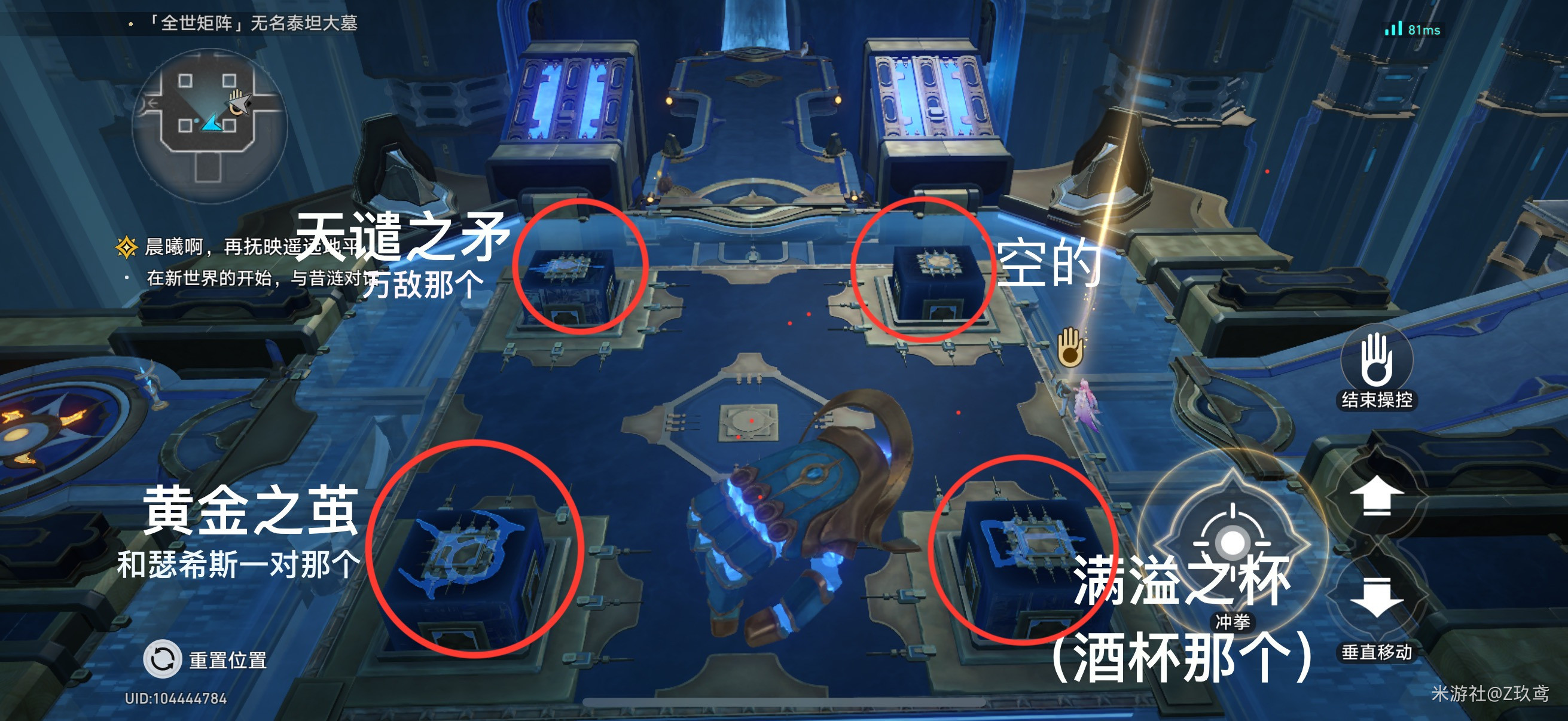 根据上面得到的对应关系,来到上层,操作扎格列斯之手撞击对应的方块: