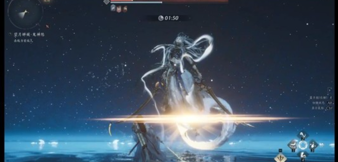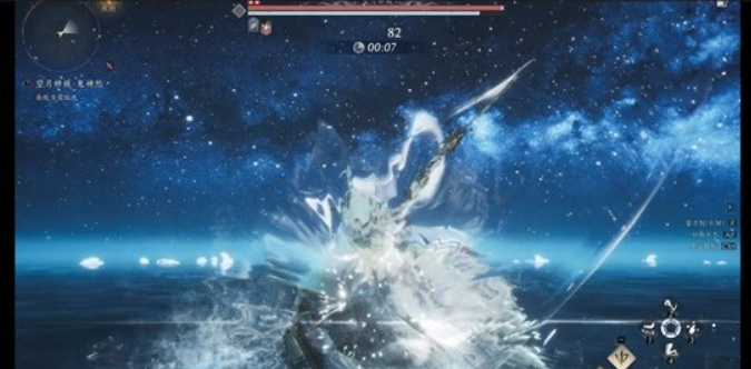 ①尾巴劈下来。劈之前会喊一句,“月华xx”,注意这句话的时机,提醒你可以准备卸势了。也会有光,但我这里有bug,看不清具体什么颜色,只显示一个炫彩方框。