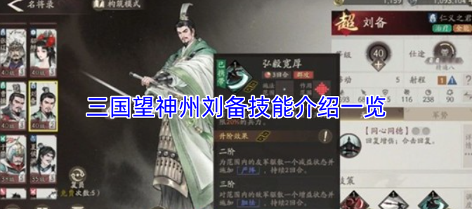 在《三国望神州》中,刘备是一个非常热门的角色,深受玩家喜爱。许多玩家们都非常好奇他的技能表现。本文小编将为玩家们带来详细的刘备技能介绍攻略,有兴趣的玩家们可以前来一起看看!