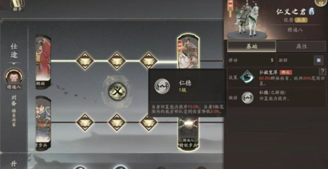 刘备的被动可以为我方全体武将提供18%的生命值上限提升,这个效果让队伍的整体生存能力得到显著增强。