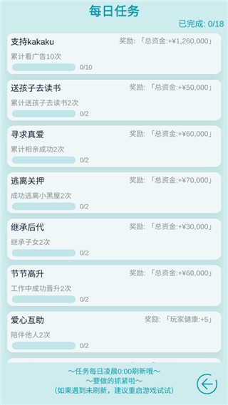 8、玩家可以自行完成任务,到凌晨的时候任务会重新刷新;