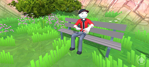 2、开始你会来到一个没什么人的草地上,左下角按键可以控制自己移动,右下角是跳跃,滑动右侧屏幕就可以调整视角方向,查看周边环境。